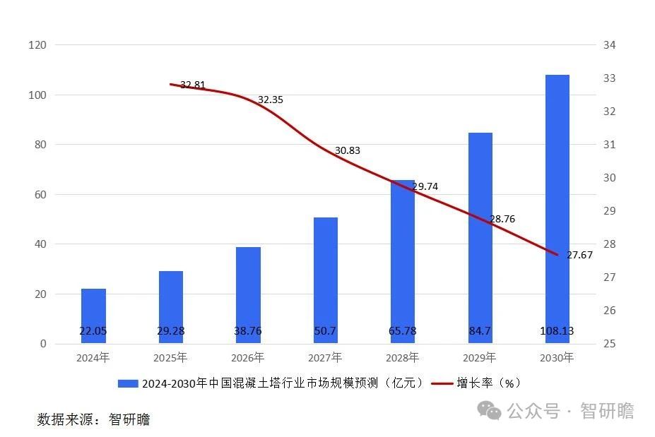 图表:2024-2030年中国混凝土塔行业市场规模预测